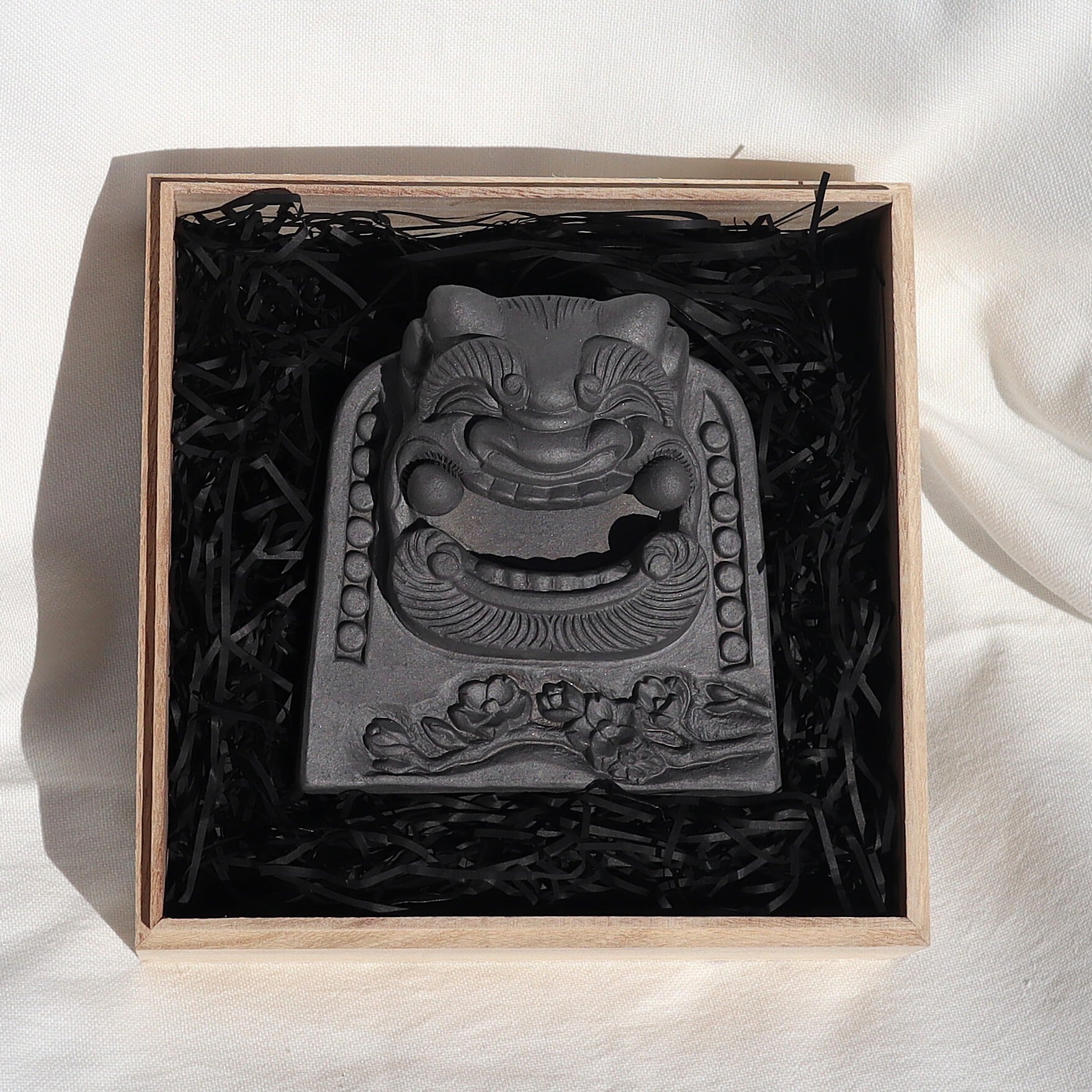 ※瓦製品のため、手の油移りがあります。瓦独特の経年変化をお楽しみいただける仕上げです。経年変化により艶のある黒色になっていきます。