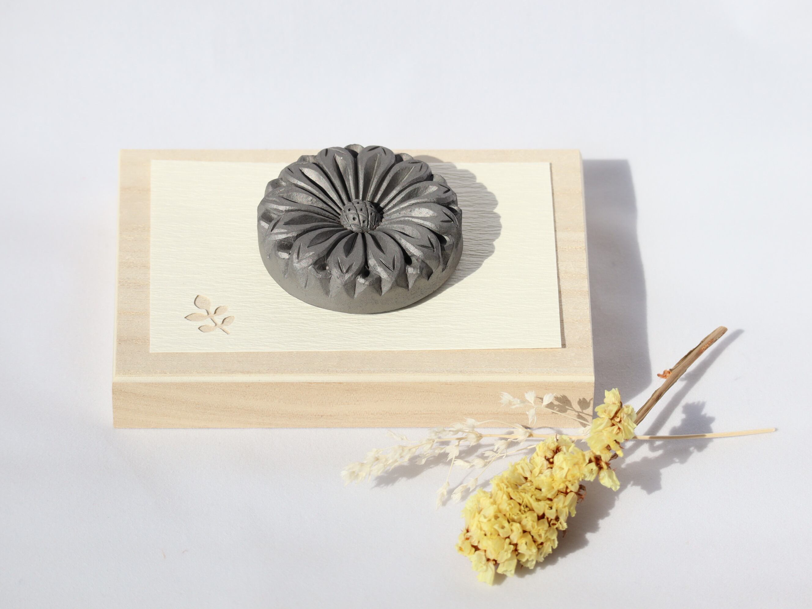 菊の形をしたアロマストーンは、玄関や室内に飾るのに最適です。アロマオイルを垂らす瞬間は、お花に露が滴るような美しさです。そして、アロマが染み込む時間は少しほっとする、紡がれてきた歴史を感じるひと時をつくりだします。