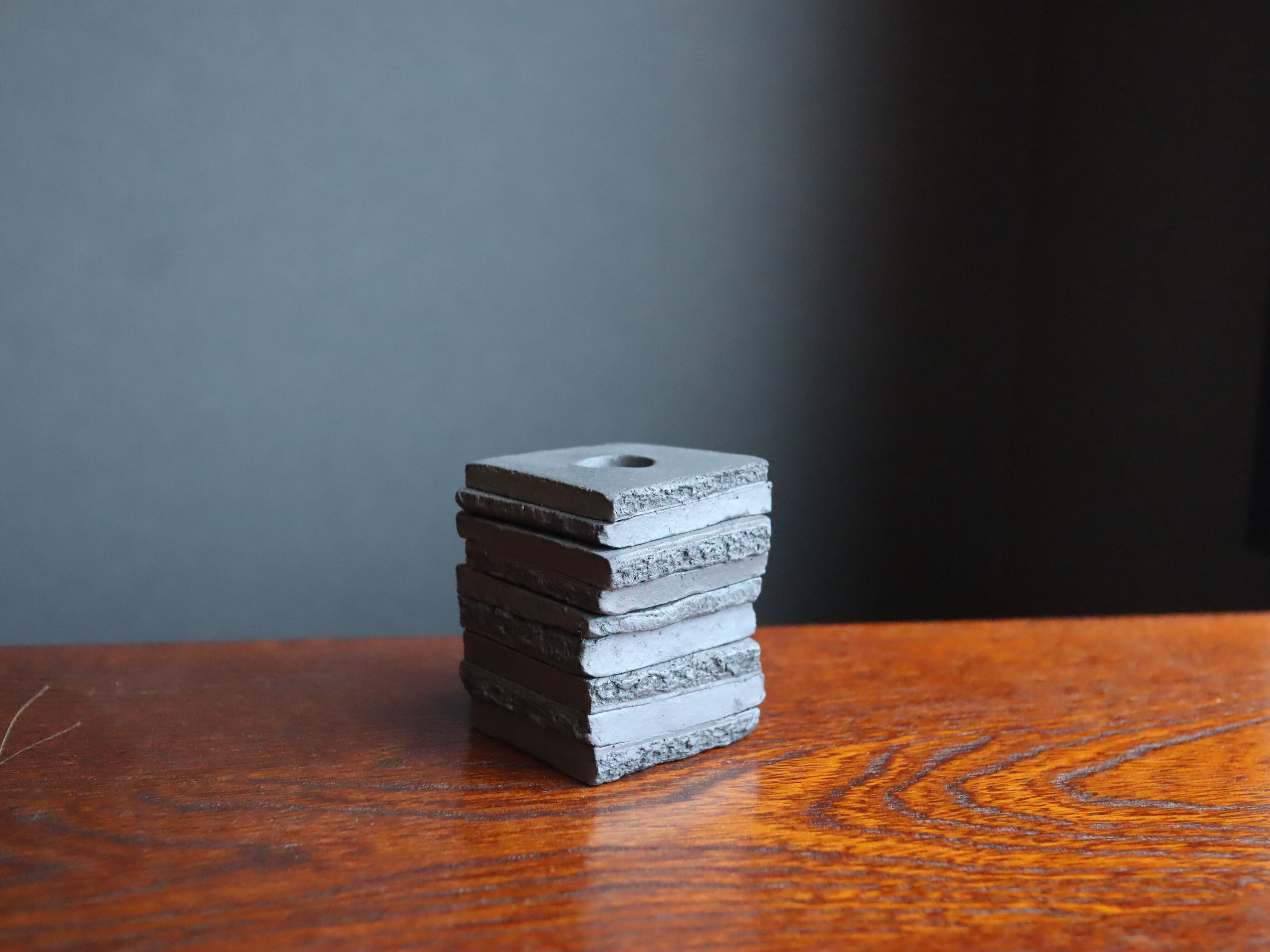 土の断面を活かした瓦の一輪挿しです。