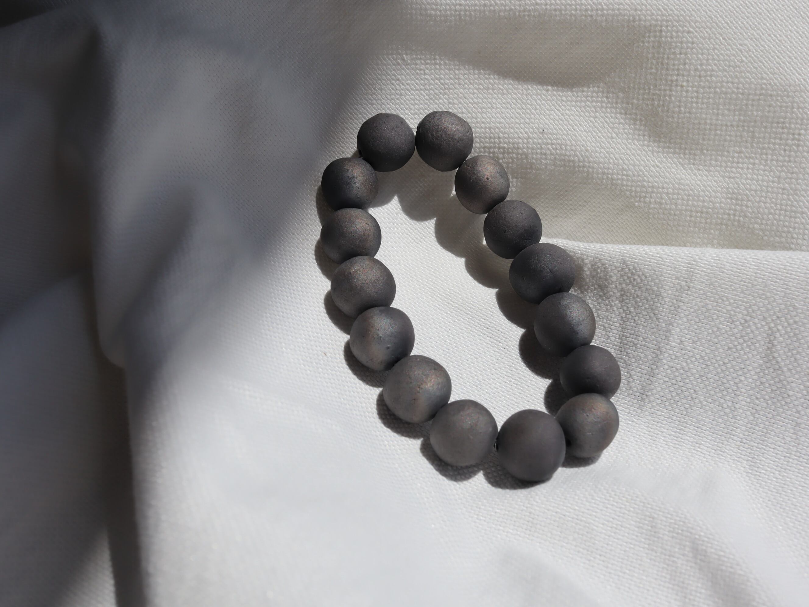 瓦の焼きムラで出る虹をあえて全面に出した唯一無二のアクセサリー。同じものはひとつとしてありません。